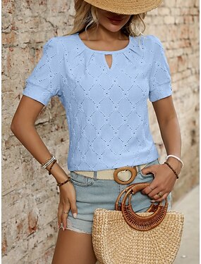 Womens Póló Egyszínű Mindennapi Stílusos Kényelmes Rövid Ujjú Kerek Nyakú Rendszeres Felsők Mindennapi Kék Rózsaszín Lila Nyár Tavasz