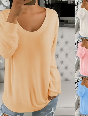 Női Póló Csehország Szüret Alkalmi Hosszú ujj V-alakú Normál felsők Napi Gesztenyebarna Arcpír rózsaszín Poros kék Khakizöld Tavasz Ősz