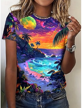 Női Póló Nyomtatott Ombre Alkalmi Rövid ujjú Kerek Normál felsők Napi Bíbor Bézs Nyár