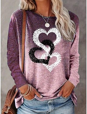 Női Póló Nyomtatott Szív Grafika Szüret Stílusos Klasszikus Hosszú ujj Terített nyak Normál felsők Napi Medence Bíbor Lóhere Tavasz Ősz Tél