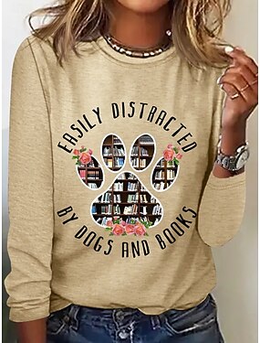 Női Póló Kerek Nyakú Hosszú Ujjú Tunika Macska Felirat Vicces Kerek Nyakú Szabályos Felsők Hétköznapi Hétvégi Nyomtatás Fekete Piros Kék Lila Zöld Tavasz és Ősz
