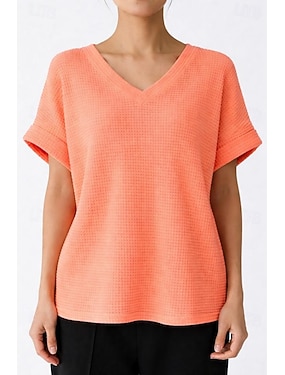Női Túlméretezett Gofris póló Tee Top Tekert mandzsetta Tömör szín Elegáns Divat Alkalmi Rövid ujjú Denevérujj V-alakú Hosszú felsők Napi Alkalmi Nyaralási viselet Világoszöld Bíbor Narancssárga