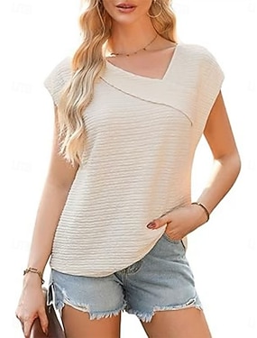 Női Póló Tee Top Sima Divat Stílusos Klasszikus Rövid ujjú Aszimmetrikus nyak Normál felsők Napi Alkalmi Hétvége Fekete Fehér Arcpír rózsaszín Sárgabarack Nyár Tavasz