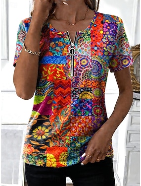 Női Póló Cipzár Grafika Paisley Stílusos Klasszikus Alkalmi Rövid ujjú Terített nyak Normál felsők Napi Sport Hétvége Medence Bíbor Barna Lóhere Nyár Tavasz