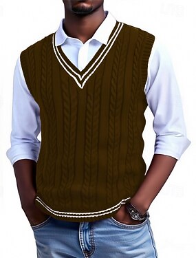 Férfi Pulóver mellény Ruha Pulóver Pulóver pulóver Mellény Kötött pulóver Bordázott Kötött Normál felsők Kötött Sima V-alakú Divat Alkalmi Vakáció Hétköznapi viselet Ruházat Ősz Tél Fekete Barna S M L