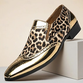 férfi leopárdmintás bebújós cipő - stílusos hétköznapi lábbeli fényes arany díszítéssel, nagyszerű partikra, esti kiruccanásokra és különleges eseményekre