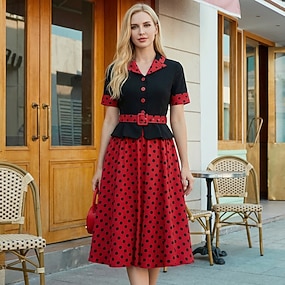 1950-es Rockabilly Déli Ruhák Rövid ujjú Övvel Pöttyös A-vonalú Térfogatcsökkenés Jelmez Női Hétköznapi Zsúr Felnőttek Ruha Tavaszi nyár