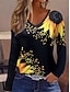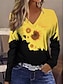Női Póló Virágos Grafika Növények Szüret Stílusos Klasszikus Hosszú ujj V-alakú Normál felsők Napi Nyomtatott Fekete Sárga Tavasz Ősz