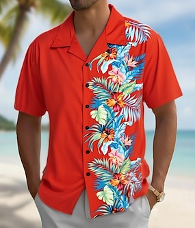 Férfi Virágminta Trópusi virágok Hawaii ing Gombos póló Aloha ing Rövid ujjú Hawaii Szabadság Strandruházat Nyár Tavasz Térfogatcsökkenés 3D nyomtatás galléros ingek Első egy zseb Medence