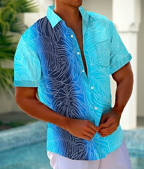 Férfi Pálmafa levél Trópusi növények Ing Hawaii ingek Aloha ing Rövid ujjú Hawaii Vakáció Szabadság Nyár Térfogatcsökkenés 3D nyomtatás Első egy zseb Vászonszerű ing Medence Világoskék