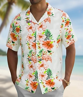 Férfi Flamingó Virágminta Virágok Ing Kubai ing Hawaii ing Rövid ujjú Hawaii Vakáció Szabadság Strandruházat Nyár Tavasz Camp Gallér ing 3D nyomtatás Arcpír rózsaszín Narancssárga