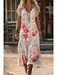 női hosszú ruha maxi ruha boho ruha alkalmi ruha lenge ruha nyári ruha vintage vakáció hétköznapi tengerpart normál szabású virágmintás háromnegyedes ujjú v nyakú piros nyár tavasz ősz