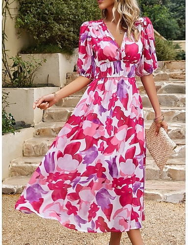 Női Maxiruha hétköznapi ruha Elegáns Csehország Szüret Laza öltözet Virágos Grafika Rövid ujjú V-alakú Medence Arcpír rózsaszín Bíbor Narancssárga Nyár Tavasz