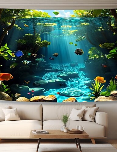 víz alatti óceánvilág színes trópusi halak korallzátony napfény sugarak kék víz természet fali gobelin fali dísz hátteret hálószobához nappalihoz gyerekeknek gyerekszoba lakberendezés falikép