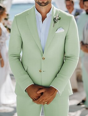 Férfi Hétköznapi Tengerparti esküvő Vászonruhák Égszínkék Zsálya Napi Pehelysullyú Egyszínű Standard 2 részes készlet Egysoros egy gombos