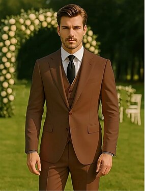 Férfi Esküvő Esküvői öltönyök Hasított rever Barna Előírásos Egyszínű Karcsúsított 3 részes készlet