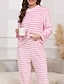 Női Pizsamák Lounge-ruházat Alkalmi Virágos Csík Rugalmas derék Nadrág Otthon Napi Ágy Hosszú ujj Terített nyak Világos rózsaszín fehér por Lótusz rózsaszín Fehér Arcpír rózsaszín Ősz Tél Laza öltözet