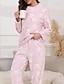 női pizsama garnitúra levél plüss alkalmi kényelem otthon napi ágy korall gyapjú korall bársony meleg nyakú hosszú ujjú pulóver nadrág elasztikus derék ősz tél világos rózsaszín fehér otthoni ruhák