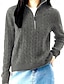 Női Pulóver Divat Alap Alkalmi Tiszta szín Bordázott Fél cipzár Cipzár Kötött Hosszú ujj Normál felsők Kötött Szabadtéri Napi Hétvége Bézs Ősz Tél