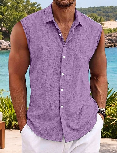 Férfi Ing Vászon ing Nyári póló Strandruházat Gombos póló Ujjatlan póló Tömör szín Hétköznapi Vakáció Medence Fekete Fehér Arcpír rózsaszín Ujjatlan Térfogatcsökkenés Nyár Tavasz Ruházat