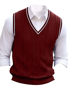Férfi Pulóver Pulóver mellény Kábel Kötött Kötött Tömör szín V-alakú Stílusos Régies stílus Előírásos Szabadtéri Ruházat Tél Ősz Fekete Bor S M L