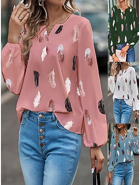 Női Póló Blúz Grafika Divat Stílusos Klasszikus Hosszú ujj V-alakú Normál felsők Napi Alkalmi Hétvége Fekete Fehér Arcpír rózsaszín Tintakék Lóhere Nyár Tavasz Ősz