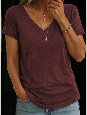 Női T-Shirt Egyszínű Grafikus Divatos Stílusos Alap Rövid Ujjú V Nyak Szokásos Felsők Napi Hétvégi Fekete Fehér Borvörös Bézs Nyár