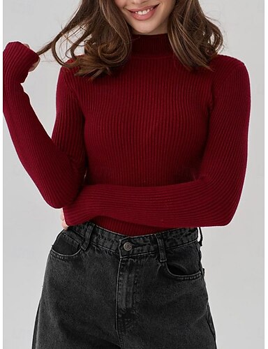 Női Pulóver Pulóver pulóver Alkalmi Puha Tiszta szín Bordázott Körgallér Kötött Hosszú ujj Normál felsők Kötött Szabadtéri Napi Hétvége Bor Medence Ősz Tél