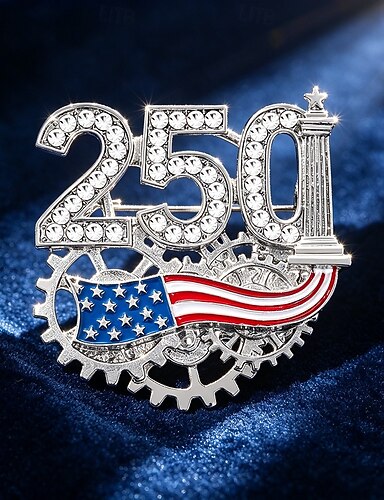 250. évfordulós emlékbross férfiaknak &női, amerikai hazafias, strasszokkal kirakott cinkötvözetből készült kitűző, ideális kiegészítő ruházathoz, blézerhez, kabáthoz &gallér stílus
