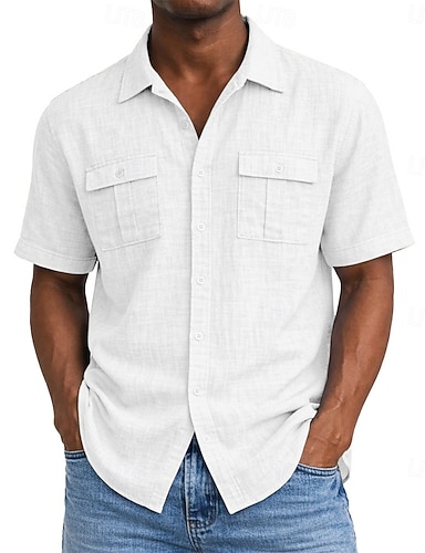 Férfi Ing Vászon ing Alkalmi ing Gombos póló Pamut póló Sima Hétköznapi Tengerpart Medence Fekete Fehér Arcpír rózsaszín Rövid ujjú Térfogatcsökkenés Nyár Ruházat Sima