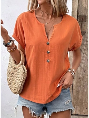 Női Póló Tee Top Mellkasi gombok Sima Divat Stílusos Klasszikus Rövid ujjú V-alakú Normál felsők Napi Alkalmi Hétvége Fekete Fehér Rubin Sötétkék Narancssárga Nyár Tavasz