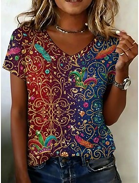 Farsang Női Póló Nyomtatott Grafika Szüret Alkalmi Rövid ujjú V-alakú Normál felsők Napi Hétvége Nyaralási viselet Bíbor Nyár