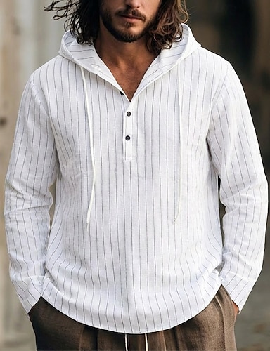 Férfi Ing Vászon ing Nyári póló Strandruházat Kapucnis ing Csíkos ingek Függőleges csíkok Hétköznapi Vakáció Fekete Fehér Sötétkék Lóhere Hosszú ujj Kapucni Nyár Tavasz Ruházat
