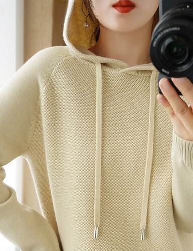 Női Pulóver Pulóver pulóver Alkalmi Puha Színes Tiszta szín Bordázott Kapucni Kötött Hosszú ujj Normál felsők Kötött Szabadtéri Napi Hétvége Fehér Sárgabarack Ősz Tél
