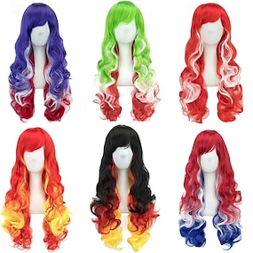 Karneváli paróka 2026 Színes Hullámos Göndör szövés 28 hüvelyk Szintetikus fesztivál paróka Mardi Gras Felvonulás Cosplay jelmez frizura mert Női