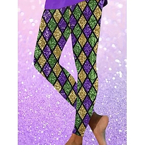 Karnevál Női Leggings Aktív Szabadság Divat Hosszú Magas Derék Nadrág Grafika Geometrikus Nyomtatás Magas Vágás Kényelem Kültéri Kényelmes Rugalmas Szabadság Formális Fesztivál Lila Fekete Zöld Nyár