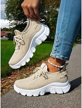 női khaki színű, lélegző túracipő - könnyű, fűzős, kényelmes cipők utazáshoz és mindennapi viselethez