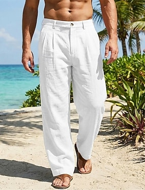 Férfi Vászon nadrág Nadrág Nyári nadrág Pliszé Egyenes lábbal Sima Mokaszinok Légáteresztő Teljes hossz Szabadtéri Hétköznapi Napi Szabadság Divat Laza öltözet Fekete Fehér Magas derék Mikroelasztikus