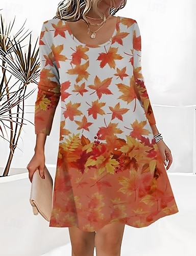 Női Mini ruha hétköznapi ruha Nyomtatott ruha Divat Modern Szabadtéri Vakáció Napi Laza öltözet Falevél Hosszú ujj Terített nyak Narancssárga Ősz Tél