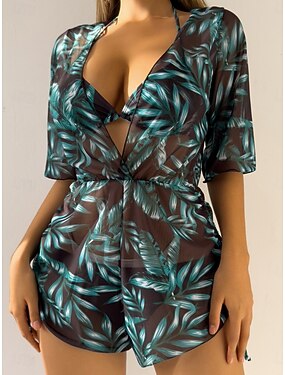 Női Bikinis Dér Részletes Két Részből Álló Fürdőruha Kecses Háló Vintage Szexi Grafikai Állati Mély Vágás Ujjatlan Fürdőruhák