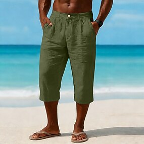 Férfi Vászon nadrág Capri nadrágok Nyári nadrág Zseb Rugalmas derék Sima Mokaszinok Légáteresztő Borjú-hossz Napi Szabadtéri Tengerpart Szabadság Divat Medence Sötét Khaki Mikroelasztikus