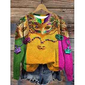 Karnavál Női Pulóver Kapucnis Grafikus Shiraz Klasszikus Hétköznapi Hosszú Ujjú Kerek Nyak Normál Felsők Parti Esti Ruházat Parti Öltözet Mintás Fekete Sárga Lila Zöld Tavasz Ősz