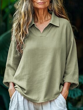Női Blúz Művászon ing Tömör szín Stílusos Alkalmi Féhosszú Terített nyak Normál felsők Napi Medence Világoszöld Arcpír rózsaszín Lóhere Khakizöld Nyár Tavasz