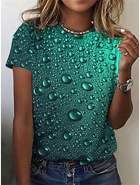 Női Póló Nyomtatott Ombre Grafika Toll Alkalmi Rövid ujjú Kerek Normál felsők Napi Alkalmi Hétvége Fűzöld Hamvaszöld Fehér Sárga Sötétzöld Nyár