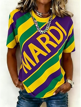 Női Póló Nyomtatott Gradiens Alkalmi Rövid ujjú Kerek Normál felsők Napi Medence Bíbor Lóhere Szivárvány Nyár