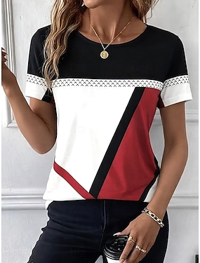 Női Waffle Póló Színblokkok Nyomtatott Grafika Geometriai Absztrakt Vintage Stílusos Klasszikus Rövid Ujjú Kerek Nyakú Hosszú Felsők Napi Kék Fekete Sárga Rózsaszín Poros Kék Nyár Tavasz