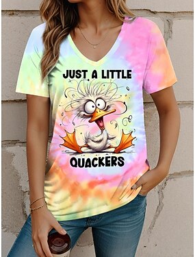 Női Póló Nyomtatott Grafika Állat Szöveg Stílusos Alkalmi Rövid ujjú V-alakú Normál felsők Napi Arcpír rózsaszín Nyár Tavasz