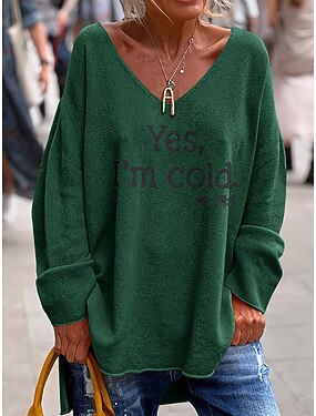 Női Póló Nyomtatott Grafika Szöveg Elegáns Szüret Divat Hosszú ujj V-alakú Normál felsők Napi Hétvége Arcpír rózsaszín Narancssárga Lóhere Szürke Tavasz Ősz