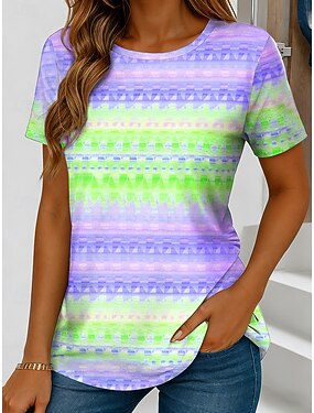 Női Póló Nyomtatott Ombre Grafika Csíkos Stílusos Klasszikus Alkalmi Rövid ujjú V-alakú Crop Tops Napi Medence Bíbor Barna Lóhere Nyár Tavasz