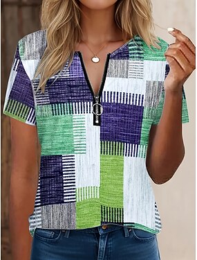 Női Póló Színes Grafika Mértani Stílusos Klasszikus Rövid ujjú Terített nyak Normál felsők Hétköznapi Napi Medence Rubin Bíbor Lóhere Khakizöld Nyár Tavasz